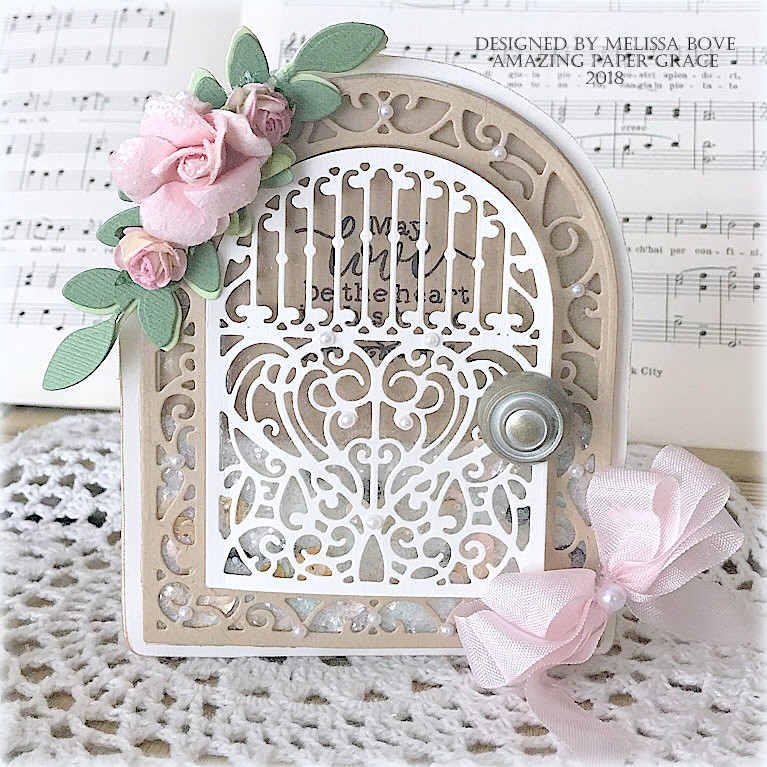 Hi there friends! I’ve been travelling and it’s so good to be home. Just in time to load you up with more inspiration. The Creative Team and I are using Layered Dies today to create Shaker Cards using the 3D Vignettes Collection. I made a card and matching gift tag using the Layered Bundle of Joy set. The tag of the set is a shaker tag :-) Coincidentally, – – wink, wink — that arched motif from Layered Bundle of Joy fits nicely inside Arched Swallowtail Tags. I cut both motifs in an inlaid manner and it made a pretty snazzy base for my card – it is also the base for my tag. I used the rattle from the Layered Bundle of Joy for the hanger on the tag. The scalloped bottom was cut using one of the edge treatments from Tiered Rosettes.