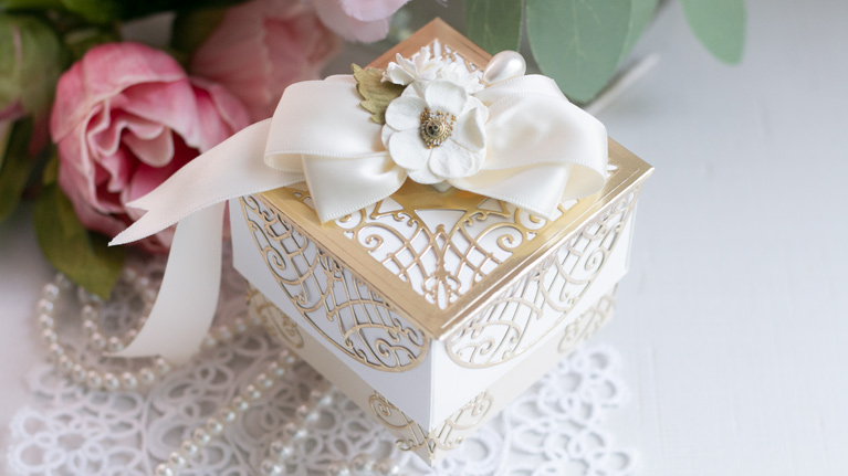 No design would be complete if you couldn’t make a sweet little box from it. It’s the perfect thing to take a box from ordinary to extraordinary! I simply created a box top the same size as the square motif that graces the top. Then it was so easy to score the flaps and simply let them decorate the lid sides.