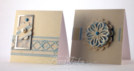 The card I posted last night made me delve into my Marcella Kay – Blue and Cream collection. It is the most delicious paper and it has a heavenly shimmer to it. I’ve said before that pictures don’t do it justice. After my Friendship card, I had scraps left over and I wanted to use this paper while I had it out. I made a set of eight 3×3 cards and I made up my own template to make the envelopes.