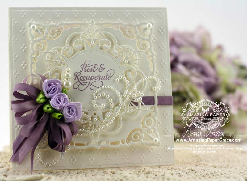 This is definitely “my kind of card.” I love the colors and the daintiness. You are a great salesperson … every time I see one of your cards I feel like I “need” to go out and buy those same Spellbinder dies. Beautiful card Becca!